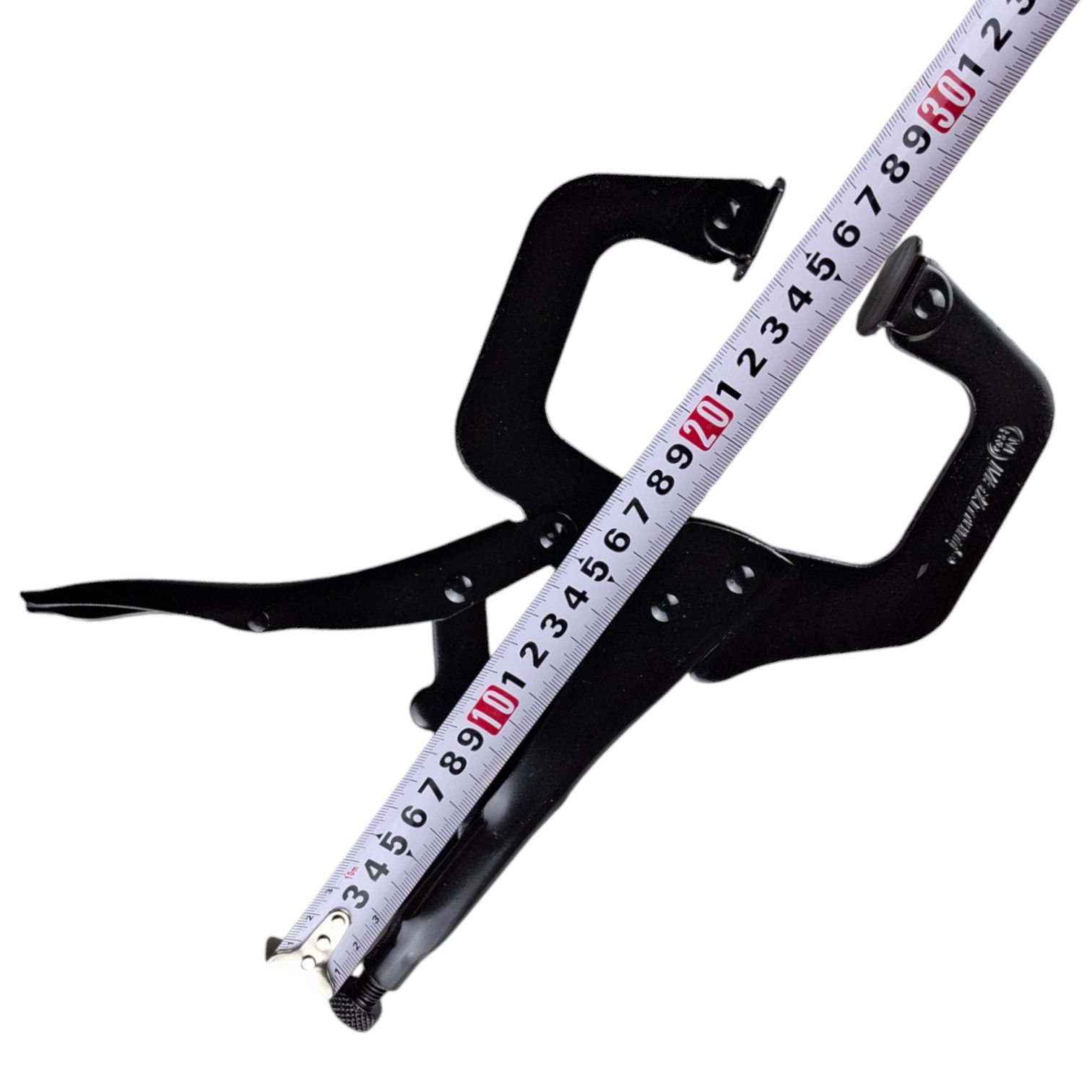Мощные зажимные клещи длиной 280 мм с фиксатором и подвижными губками. Идеальный помощник для сварки, столярных и слесарных работ, обеспечивающий надежную фиксацию деталей сложной формы.