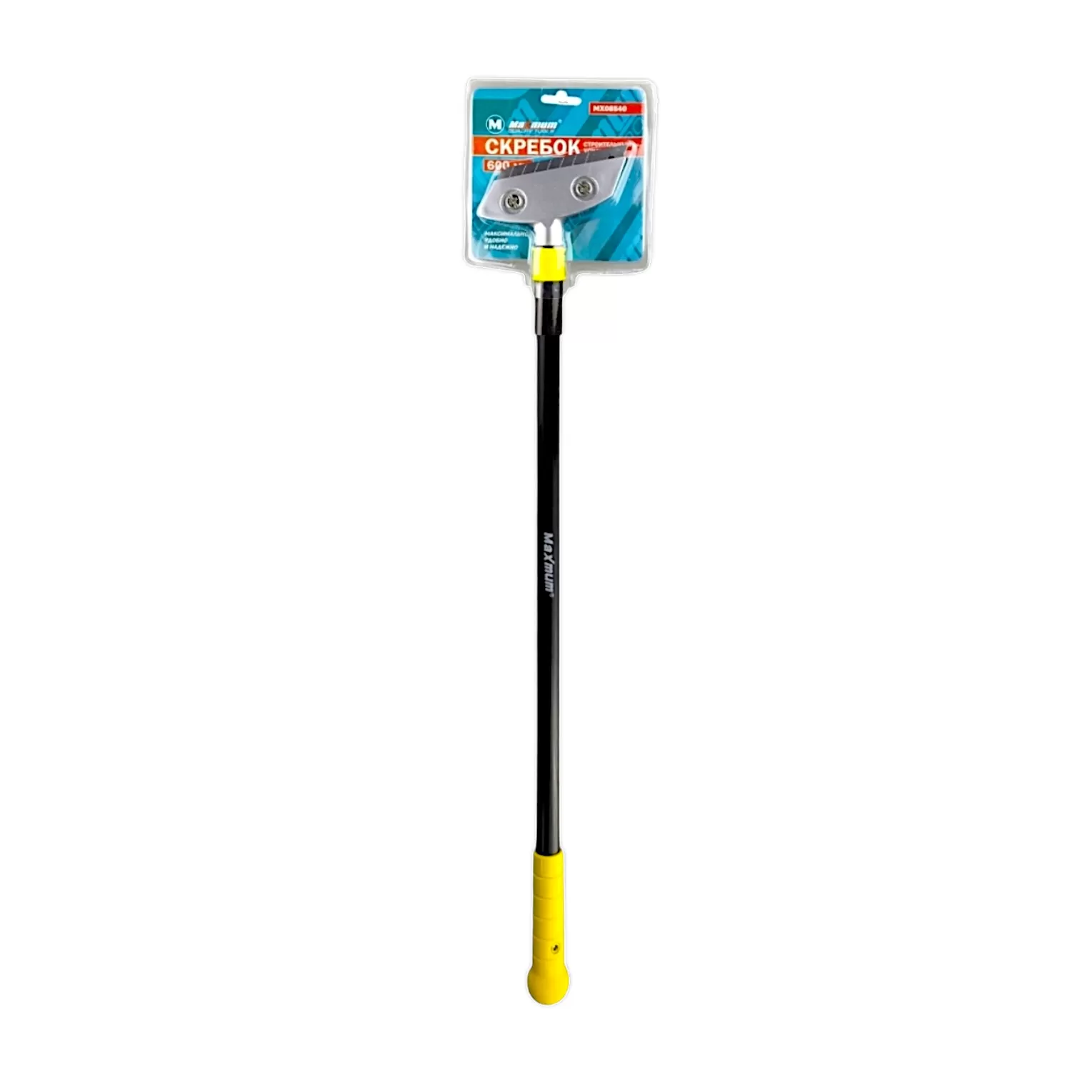 Строительный скребок – легкий эффективный инструмент для очищения поверхностей от загрязнений, наклеек, краски. Очень удобная замена ножу. Изделие оснащено длинной металлической ручкой с антикоррозийным покрытием, позволяющей обрабатывать труднодоступные места. Длина скребка 60 см..